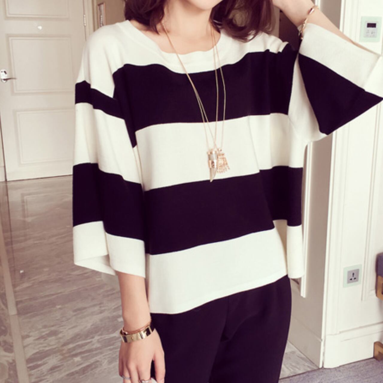 ショート丈のボーダーTシャツ 【LFT04】