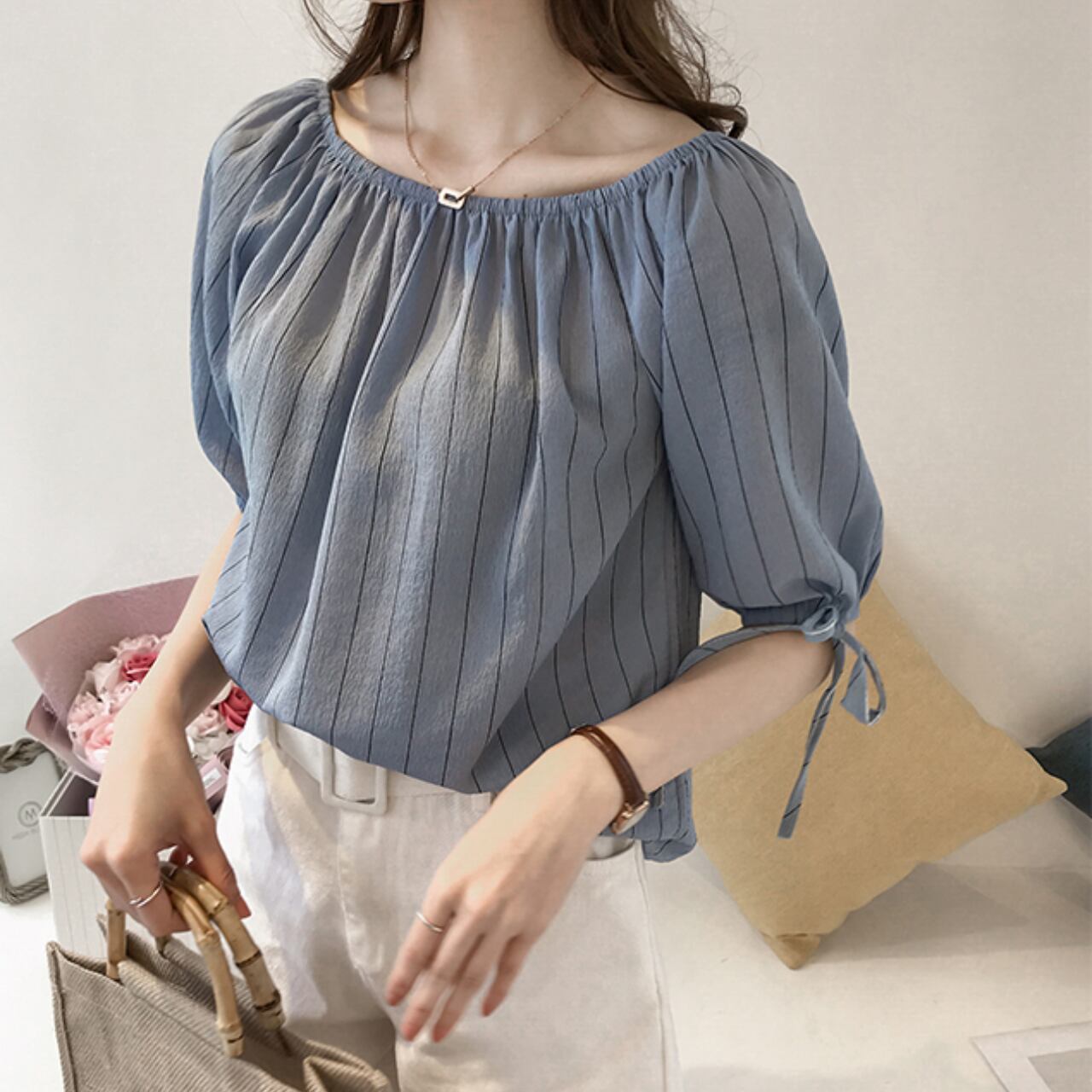 ストライプ柄ランタンスリーブシャツ 【LFT18】