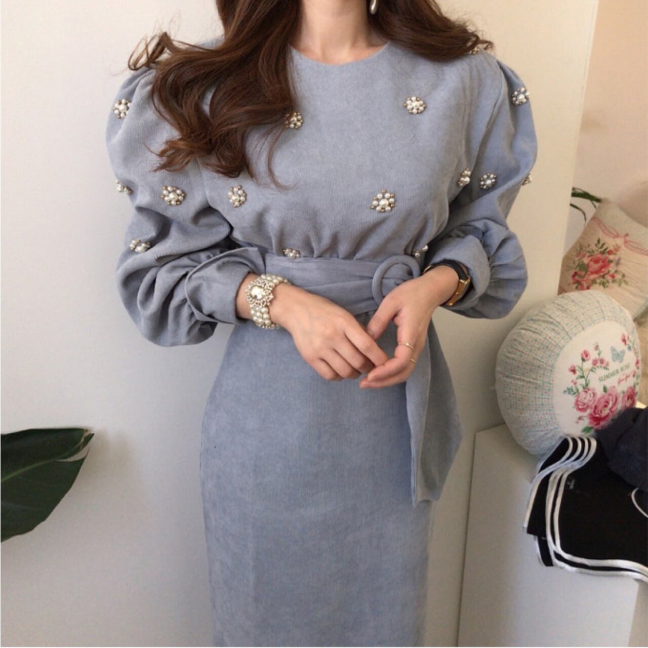 ビーズ飾りが可愛いコーデュロイ素材のワンピース 【MKOP55】